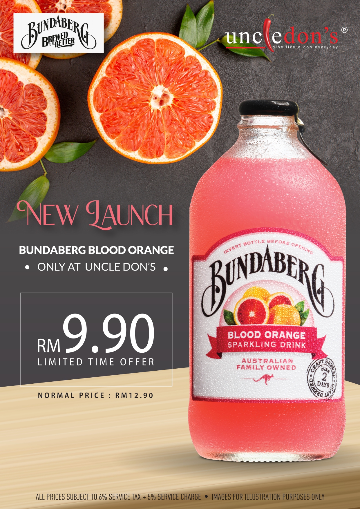 Now pouring at Uncle Don’s! Try the bold, zesty taste of Bundaberg Blood Orange for just RM9.90 – limited time only!